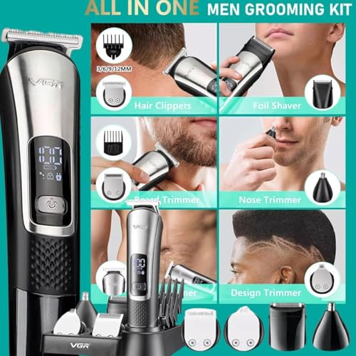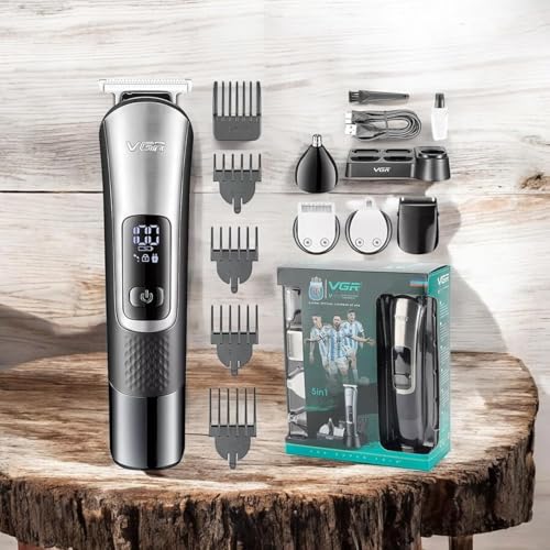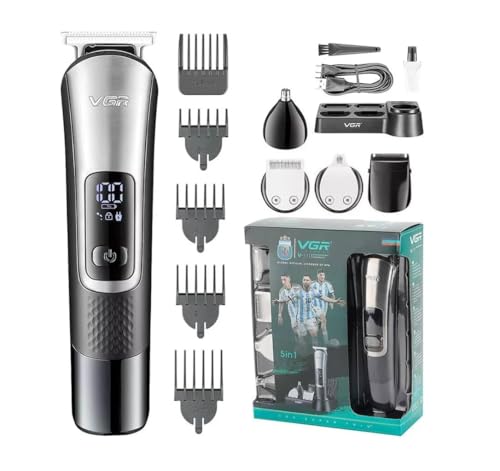 Generic - ماكينة حلاقة V-111 5×1 All In One مجموعة متكاملة بشاشه ديجيتال و قاعدة للتنظيم تعمل حتى 300 دقيقه متواصلين