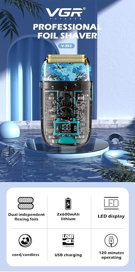Generic - ماكينة الحلاقة الكهربائية الاحترافية V-352 قوة الأداء والتصميم المتطور شحن سريع USB و شاشة عرض LED ذكية