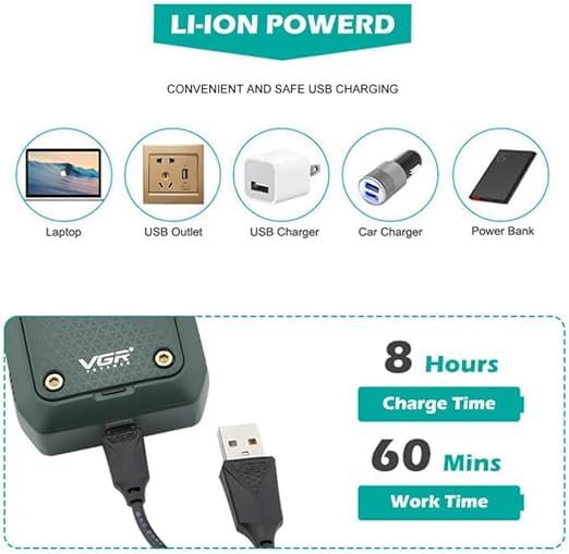 Generic - ماكينة حلاقة كهربائية احترافية V-353 قابلة لإعادة الشحن – بوصلة USB للرجال – تصميم عصري باللون الأخضر