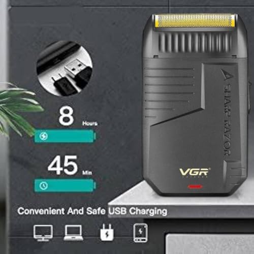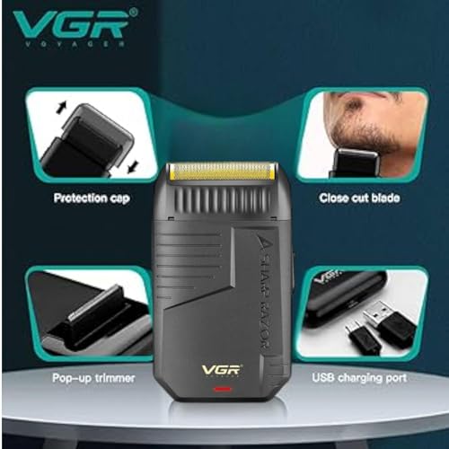 Generic - ماكينة حلاقة للرجال لتنعيم وحلاقة الذقنv-375قابلة لاعادة الشحن ذات شفرة منبثقة وكبل شحن يو إس بي مناسبة للحلاقة رطبة وجافة