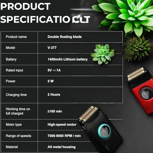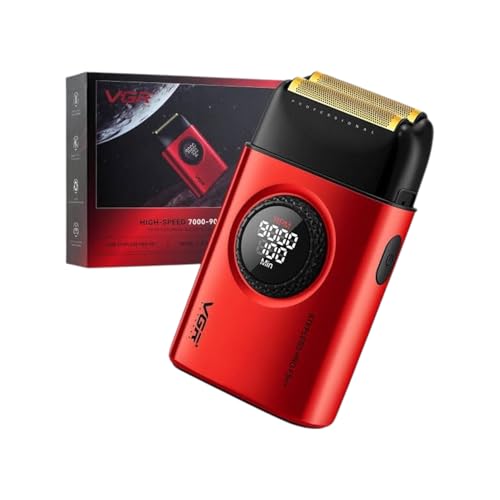 Generic - ماكينة حلاقة كهربائية للرجال لحلاقة الوجه بشفرتين مزدوجتين ومحرك بسرعة 9000 دورة في الدقيقة بـ 21 مستوى وشفرات تيتانيوم وشاشة ال اي دي لحلاقة الرأس ومستلزمات الحلاقين والهدايا، لون أحمر، V- 377