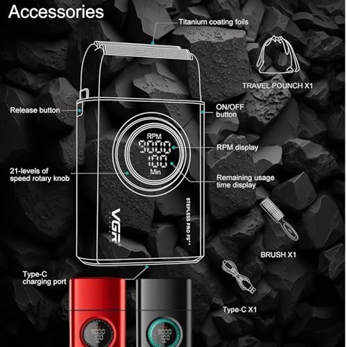 - رقائق تيتانيوم مضادة للحساسية: توفر رقائق التيتانيوم الذهبية الفاخرة الرفيعة للغاية بدون تهيج وحلاقة خالية من الصدمات، ومناسبة لأنواع البشرة الأكثر حساسية وفعالة على البقع القصيرة أو الخفيفة