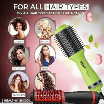 - تصميم واقي: أسنان مشط متينة من البولي بروبيلين وثلاثة إعدادات لدرجة الحرارة تساعد على منع تلف الحرارة أثناء التصفيف