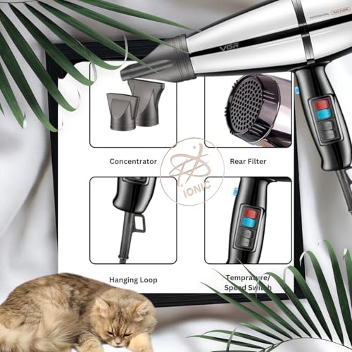 - ✔ وفري وقتك الثمين في الصباح أو المساء باختيار مجفف الشعر الاحترافي في جي ار V-465 بقدرة 2000 إلى 2400 واط بسرعتين + 3 إعدادات للحرارة وزر للتجفيف البارد لتثبيت تسريحة الشعر. تقنية نانو ايونيك المتقدمة إضافة لتدفق الهواء القوي المتسق الذي يأتي من المحرك الاحترافي بقوة 2200-2400 وات ستجعل شعرك ناعمًا كالحرير وبدون رطوبة. كابل فائق المتانة يدوم طويلًا بطول 2.5 متر.