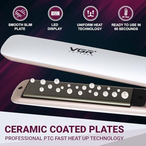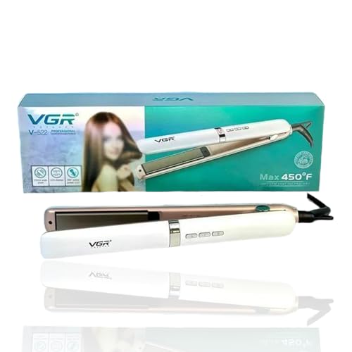 Generic - مكواة فرد شعر احترافية V-522 بألواح سيراميك مقاس 23 ملم ودرجة حرارة قابلة للتعديل 150-230 درجة مئوية وشاشة ليد ووظيفة تسخين لمدة 60 ثانية، لون أبيض