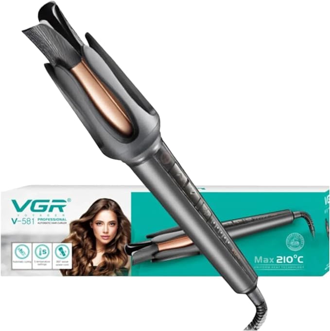 Generic - مكواة تجعيد الشعر الاوتوماتيكية الاحترافية V-581، مطلية بالسيراميك، تحكم متعدد المستويات في درجة الحرارة، تسخين سريع، دوران ثنائي الاتجاه، شاشة ال اي دي