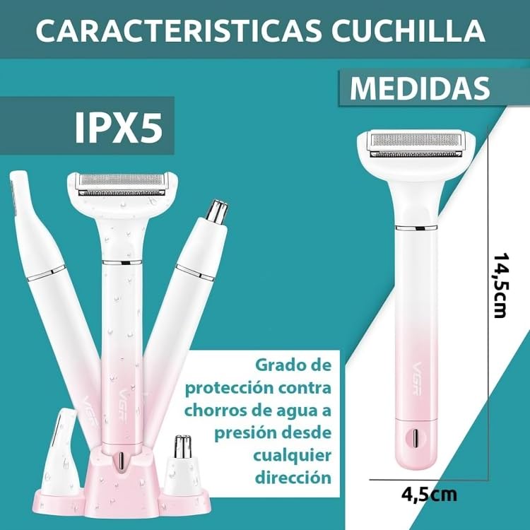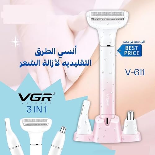 Generic - ماكينة إزالة الشعر النسائية V-611 – 3 في 1 للعناية بالجسم – شفرات فولاذية دقيقة مقاومة للصدأ – بطارية قابلة لإعادة الشحن بشحن USB وتصميم أنيق ومريح