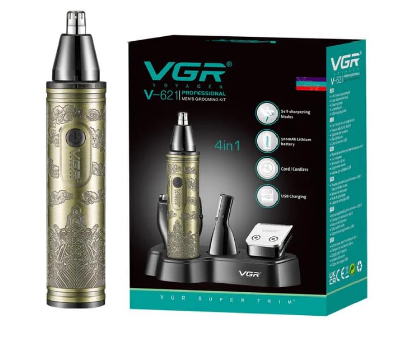 Generic - ماكينة تشذيب شعر الأنف والأذن للرجال موديل V-621 – جهاز تشذيب دقيق وقابل لإعادة الشحن – تصميم معدني فاخر – شفرات من الفولاذ المقاوم للصدأ – شحن USB – سهولة التنظيف والاستخدام اليومي