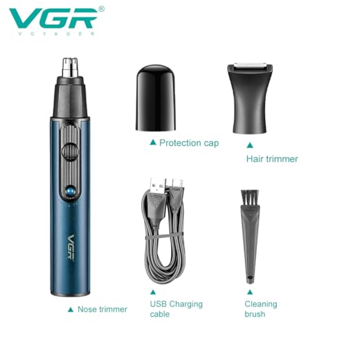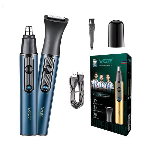 Generic - ماكينة تشذيب شعر الأنف والأذن للرجال موديل V-626 للعناية الشخصية 2 في 1 بشفرات من الفولاذ المقاوم للصدأ لمظهر نظيف وآمن بنظام شحن USB مريحة وخفيفة الوزن قابلة للتنظيف (أزرق)