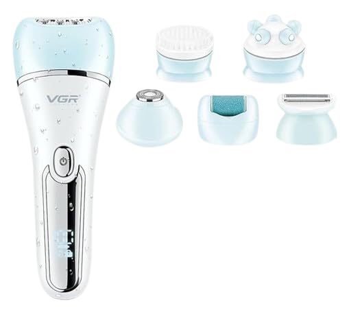 Generic - جهاز إزالة الشعر V-733 - مجموعة احترافية 6 في 1 لإزالة الشعر للنساء، شاشة LED، وقت تشغيل 90 دقيقة، بطارية ليثيوم 600mAh، مقاومة للماء (أخضر)