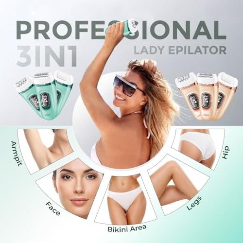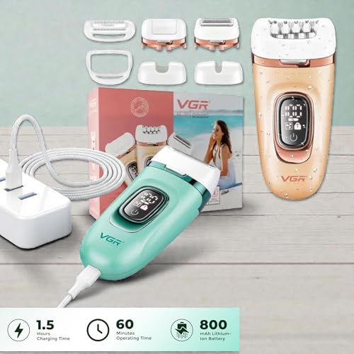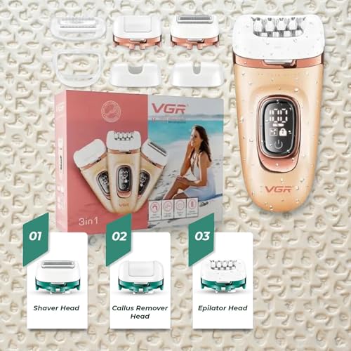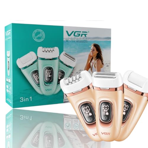 Generic - جهاز ازالة الشعر الاحترافي 3 في 1 للنساء V-762، ماكينة حلاقة لاسلكية قابلة لاعادة الشحن ومزيل مسامير القدم، مقاومة للماء بدرجة IPX7، شاشة LED، وقت تشغيل 60 دقيقة
