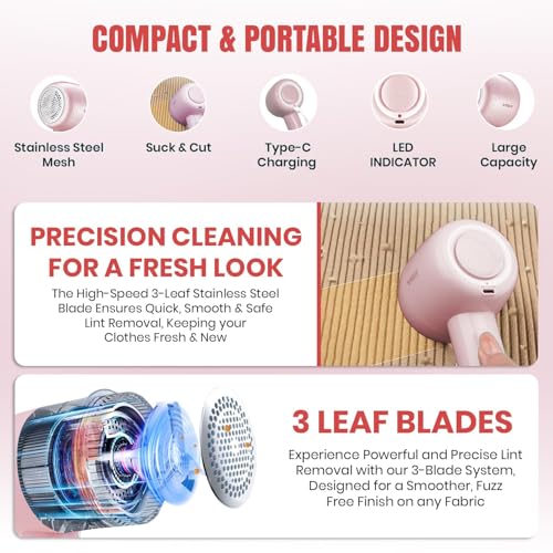- إزالة دقيقة للوبر: يوفر نظام الشفرة المصنوع من الستانلس ستيل عالي السرعة ذو 3 أوراق إزالة قوية ودقيقة للوبر والزغب والحبوب من السترات والصوف والبطانيات والأثاث للحصول على مظهر جديد ومتجدد