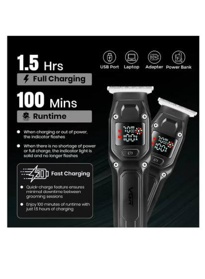 Generic - ماكينة حلاقة وتشذيب احترافية V-964 – استخدام سلكي ولاسلكي للرجال بأداء عالي وتصميم متعدد الألوان