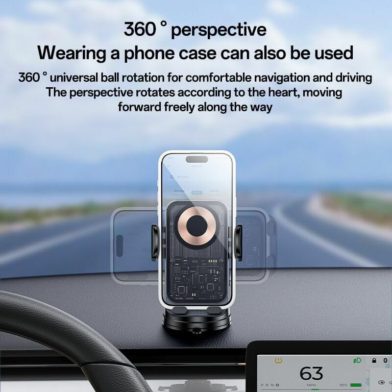 - [ تثبيت مغناطيسي آمن وقوي ]: مزود بتقنية تثبيت مغناطيسي متقدمة، يُبقي الهاتف ثابتًا في مكانه حتى أثناء الاهتزاز أو الفرملة المفاجئة. يوفّر أقصى درجات الأمان أثناء القيادة، كما يمنع سقوط الهاتف أو تحركه. المغناطيس القوي لا يؤثر على وظيفة الشحن، مما يضمن أداءً سلسًا وفعالاً في كل مرة.