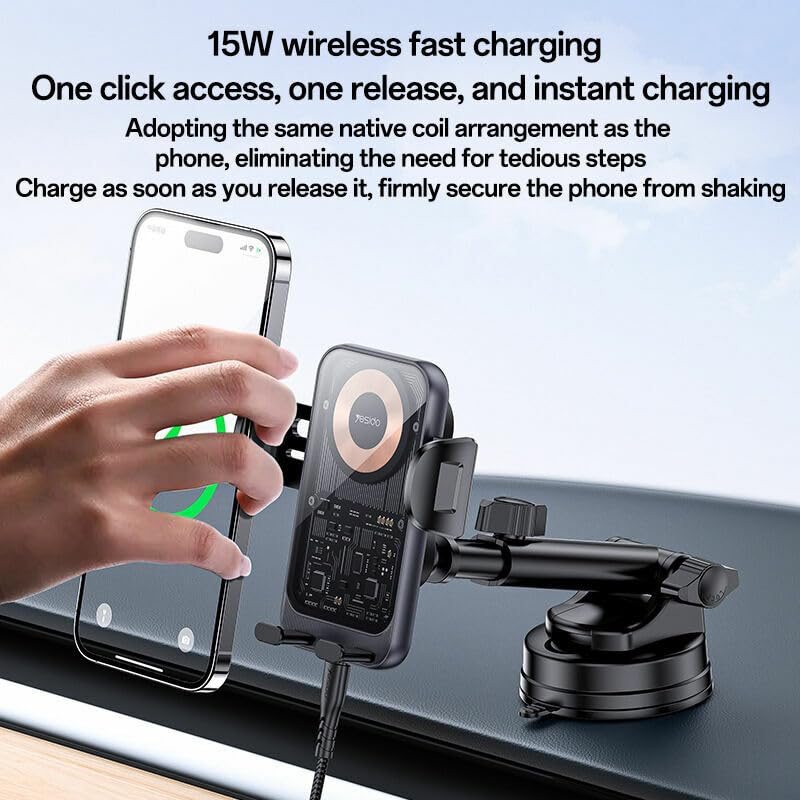 - [ شحن لاسلكي سريع بقوة 15 واط ]: يوفّر هذا الشاحن اللاسلكي أداءً سريعًا وآمنًا بقدرة 15 واط، مما يضمن شحن هاتفك بكفاءة أثناء القيادة. بمجرد وضع الهاتف، يبدأ الشحن تلقائيًا دون الحاجة لتوصيل أي كابل. تقنية الشحن الذكي تضمن توزيع الطاقة بشكل آمن لحماية البطارية، مما يجعله الحل الأمثل للرحلات اليومية والطويلة.