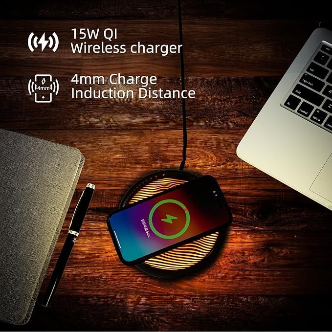 - شحن لاسلكي عالي الطاقة: يتميز بشحن لاسلكي معتمد من Qi بقوة 15 وات لشحن سريع وفعال لجهاز iPhone أو الأجهزة الأخرى المتوافقة مع Qi. الشحن آمن وسريع، مع شحن كامل في غضون 2-3 ساعات.