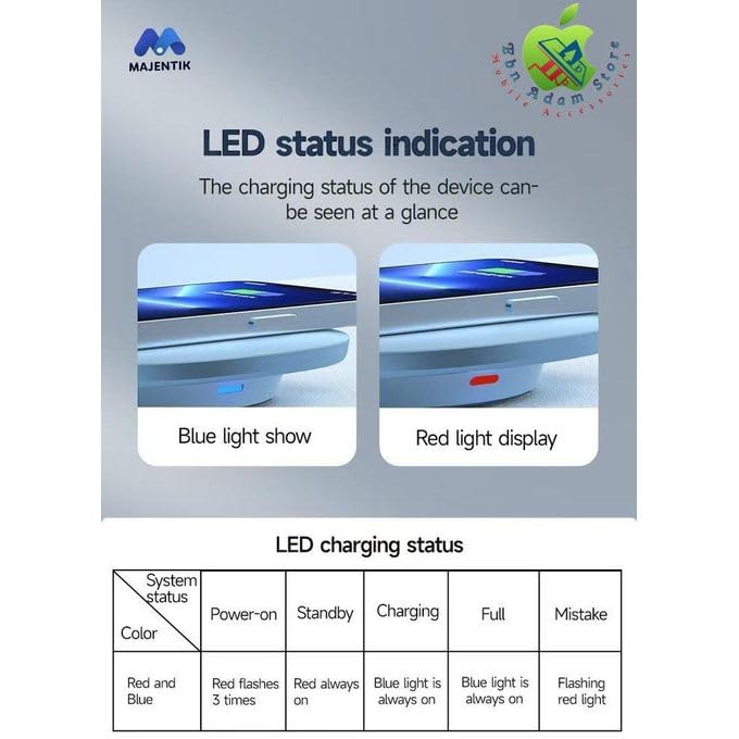 - [شحن لاسلكي سريع بقوة 15 واط]: توفر هذه القاعدة شحنًا سريعًا وآمنًا بقدرة تصل إلى 15 واط، مما يضمن تزويد أجهزتك بالطاقة بكفاءة عالية. مثالية للاستخدام اليومي، وتناسب احتياجاتك سواء في المكتب أو المنزل دون الحاجة لتوصيلات معقدة.
