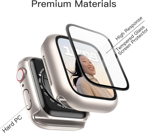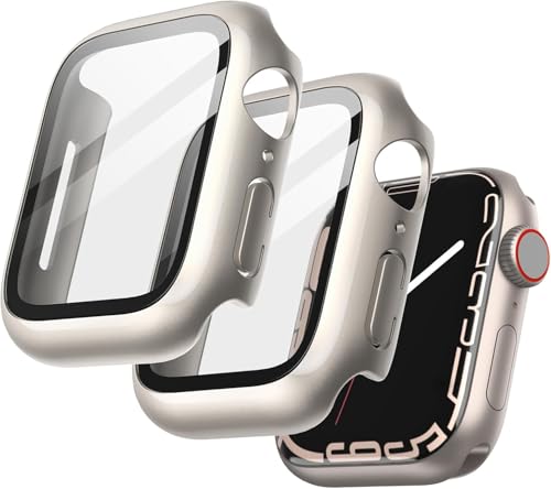 V Volt - جراب حماية لهيكل الساعة مع شاشة حماية من الزجاج المقوى عالي الحساسية من في فولت، متوافق مع سلسلة اي ووتش 9/8/7 مقاس 41 ملم (لون ستارلايت)، عبوتين