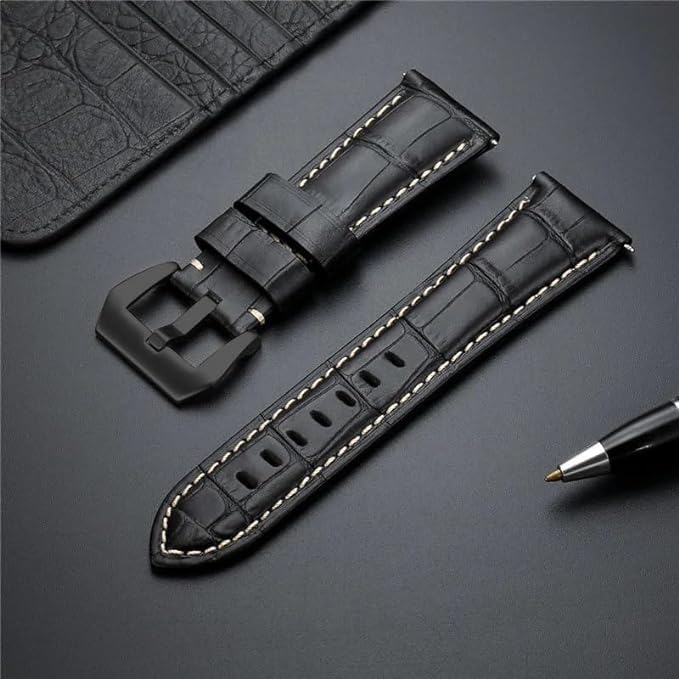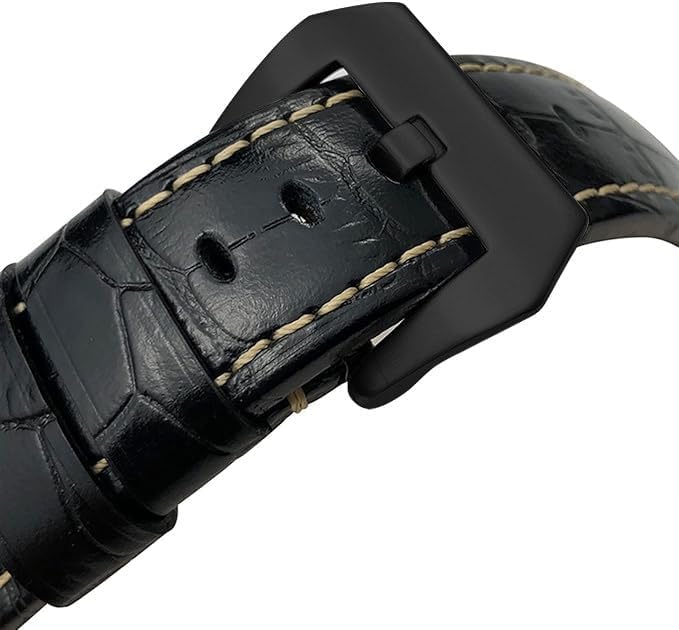 - ●【مادة عالية الجودة وتصميم فريد】 سوار ساعة رياضي مصنوع من الجلد الطبيعي ويأتي مع مشبك أسود مصقول بدقة من الفولاذ المقاوم للصدأ ليناسب وجه الساعة ويمنحها مظهر كلاسيك وأنيق.