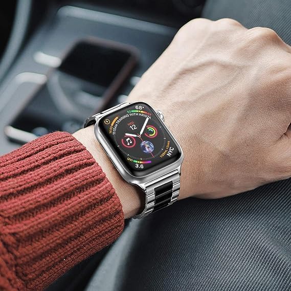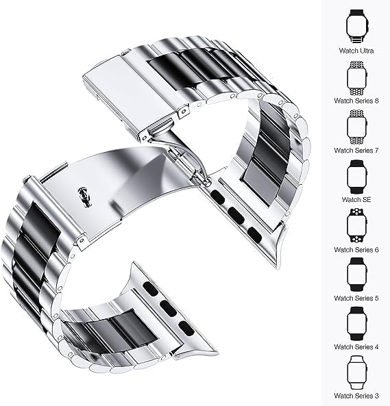 - ● [ سهل التركيب]: مشبك إغلاق متين من الفولاذ المقاوم للصدأ يغلق ساعة اي ووتش بشكل آمن، ويتميز بأنه سهل التركيب والإزالة ويحمل ساعتك الذكية بأمان.