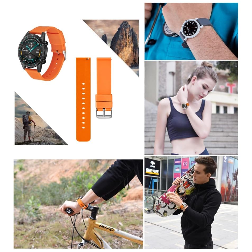V Volt - سوار سيليكون 22 ملم متوافق مع ساعة سامسونج جالاكسي 3 45 ملم و46 ملم وجير S3، وهواوي GT3 مقاس 46 ملم وGT2E وGT مقاس 46 ملم وGT2 برو، هونر ماجيك ووتش 2 46 ملم من في فولت (برتقالي)