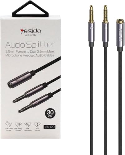 V Volt - كابل محول صوت من V Volt، تقسيم 3.5 مم لأنثى إلى ذكر مزدوج موديل YAU29، للميكروفون وسماعة الرأس، مناسب للهواتف واللابتوبات، بطول 30 سم