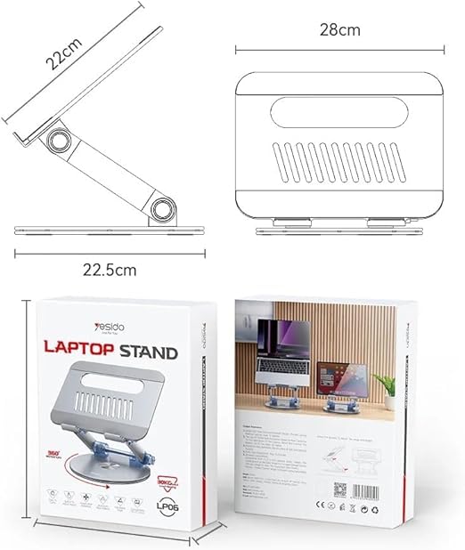 V Volt - حامل لابتوب دوّار وقابل للطي من الألمنيوم من V Volt – تصميم متين مع قاعدة موسعة ودوران 360 درجة
