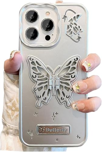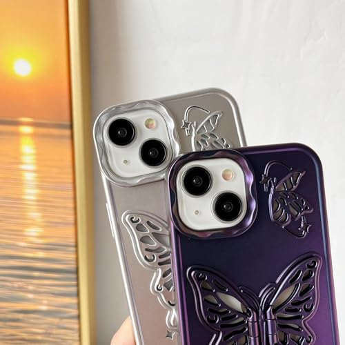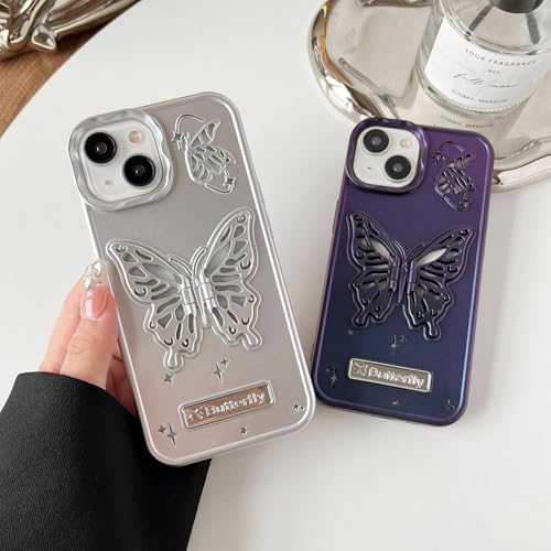V Volt - جراب حماية لموبايل آيفون 11، مع مسند مخفي على شكل فراشة بتصميم ثلاثي الأبعاد بتدرج لوني لامع، مصنوع من البولي يوريثين المقاوم للحرارة الناعم والمطلي لحماية سداسية الأبعاد من في فولت، فضي