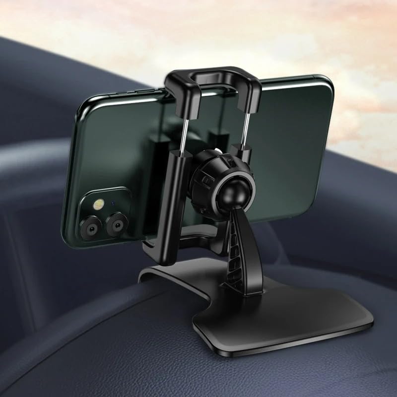 - [تثبيت آمن للوحة العدادات:] : يحتوي الحامل على قاعدة قوية مضادة للانزلاق تلتصق بإحكام بالمينا، مما يمنع الموبايل من التحرك أثناء القيادة ويمنحك استخدامًا آمنًا ومريحًا حتى في المنعطفات أو الصدمات الحادة.