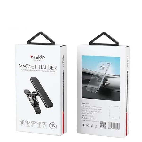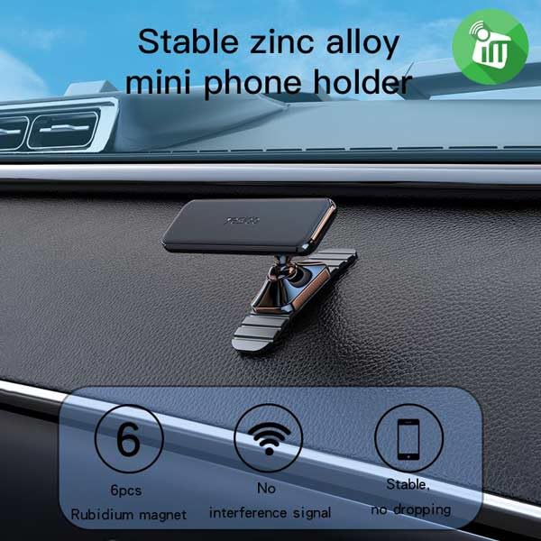 - [مغناطيس قوي لتثبيت آمن:] : مزوّد بمغناطيسات عالية الجودة تضمن ثبات الهاتف في مكانه دون اهتزاز أو سقوط، حتى عند التحرك بسرعة أو استخدام الهاتف أثناء القيادة.