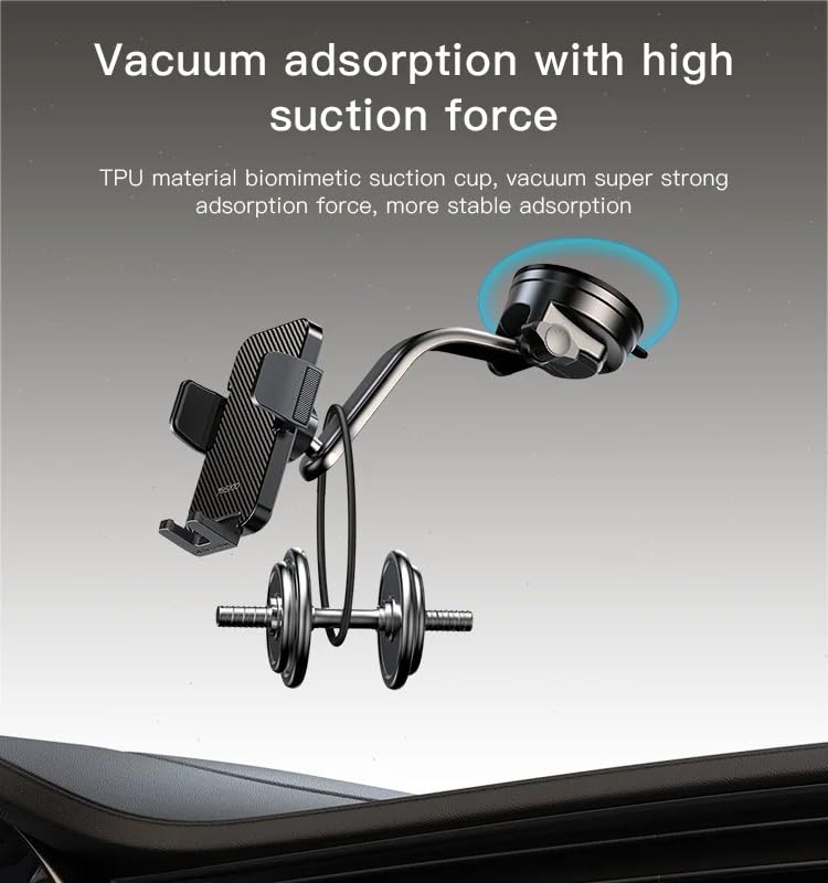 - [قاعدة شفط منحنية بتثبيت فائق]: يأتي مزودًا بقاعدة شفط قوية ذات تصميم منحني لتناسب التابلوه والزجاج الأمامي. تلتصق بإحكام وتقاوم الاهتزازات، مما يحافظ على استقرار الهاتف حتى أثناء القيادة في الطرق غير الممهدة أو المطبات المفاجئة.
