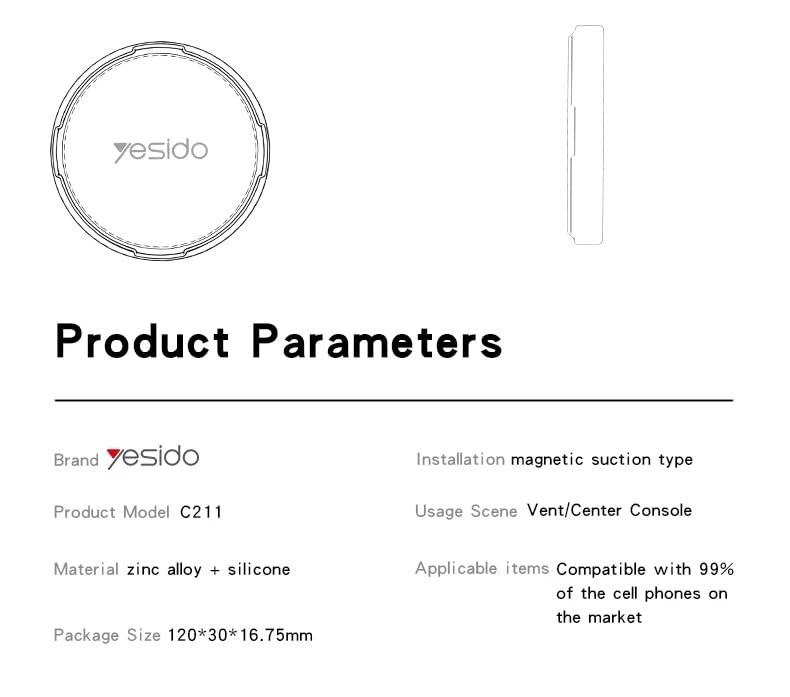 - [تصميم مدمج وأنيق يناسب جميع الأماكن]: يأتي بتصميم دائري صغير الحجم يناسب المساحات الضيقة ولا يشوّه ديكور السيارة أو المكتب. بفضل مظهره الأنيق المصنوع من سبائك الزنك، يُعد قطعة عملية وعصرية تضيف لمسة فاخرة لمكان استخدامها.