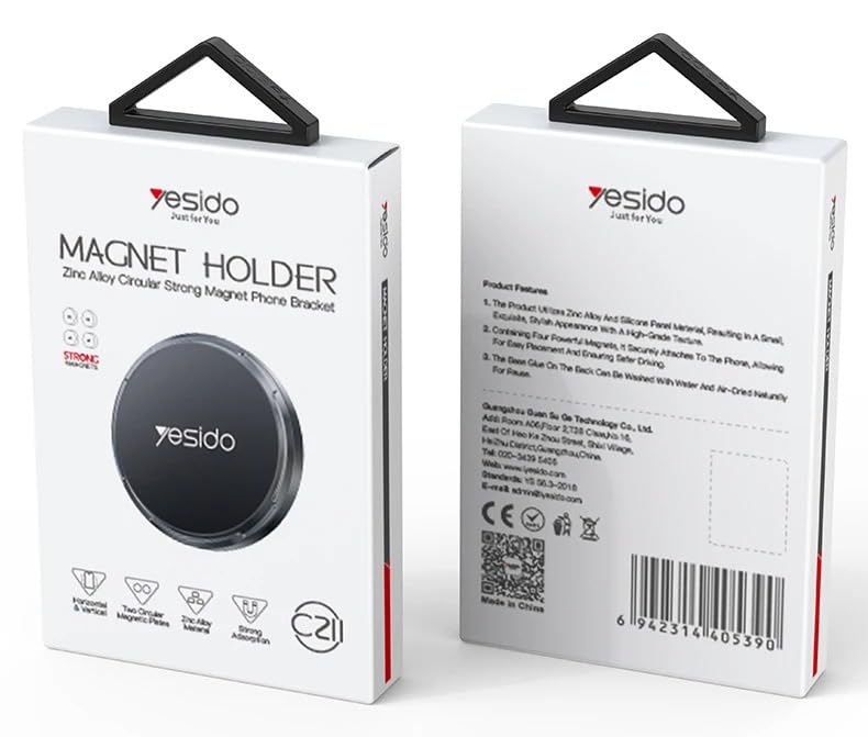 V Volt - حامل جوال مغناطيسي دائري من V Volt موديل C211، تثبيت قوي بقاعدة لاصقة، سبائك زنك متينة، تصميم مدمج للسيارة والمكتب، مغناطيس قوي وآمن لجميع الهواتف