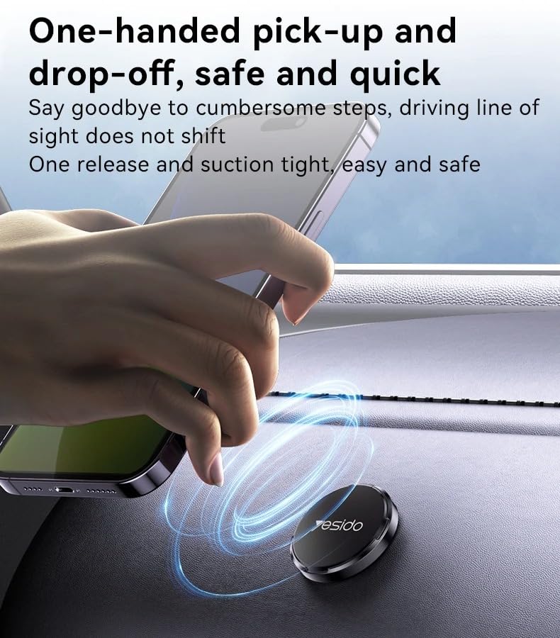 - [مغناطيس دائري فائق القوة لتثبيت فوري]: الحامل يحتوي على مغناطيس دائري مدمج عالي الجودة يوفر قوة جذب قوية للهاتف. يُثبت الجهاز مباشرة دون الحاجة إلى مشابك أو تعديلات، ويوفر سهولة في الوصول والتثبيت بيد واحدة. مثالي للاستخدام أثناء القيادة أو العمل.