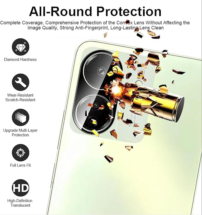 - [مقاومة للخدوش وطويلة الأمد:] يحافظ الواقي على مظهره الواضح بفضل مقاومته العالية للخدوش، مما يجعله خيارًا مثاليًا للاستخدام اليومي، حيث يمنع الخدوش الناتجة عن المفاتيح أو الأشياء الحادة، ويطيل عمر عدسة الكاميرا بشكل ملحوظ.