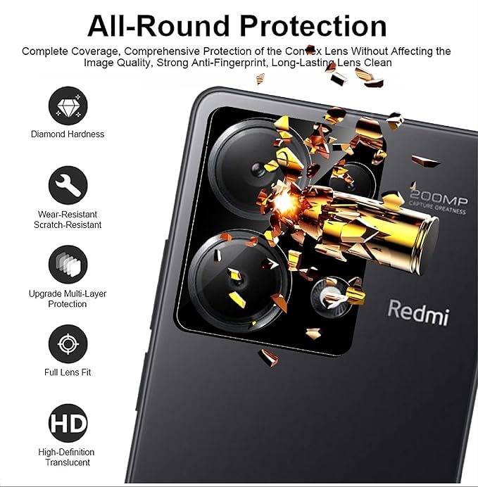 V Volt - واقي عدسة الكاميرا في فولت متوافق مع ريدمي نوت 13 برو، مقاوم للكسر بدرجة عسكرية، تصميم رفيع للغاية مضاد للخدش، مقاوم للفقاعات وبصمات الأصابع.