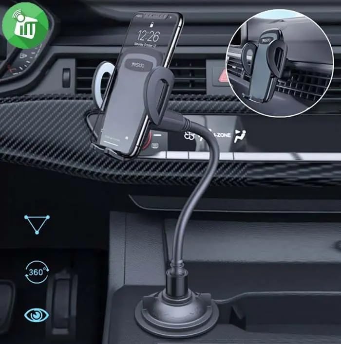 - تصميم ذكي يناسب حامل الأكواب في السيارة لتثبيت الهاتف بثبات أثناء القيادة بكل أمان وسهولة.