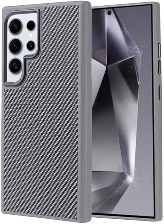 V Volt - جراب حماية من مواد ألياف كربونية متينة مقاوم للصدمات بحواف مطاطية غير قابلة للانزلاق مع حماية شاملة للكاميرا متوافق مع سامسونج جالاكسي S24 الترا من في فولت، رمادي