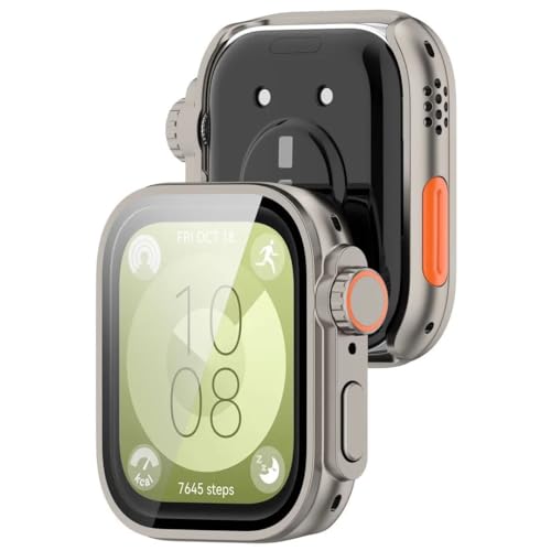 V Volt - كفر حماية للساعة من V Volt منوافق مع Huawei Watch Fit 4 Pro، غطاء متكامل مع واقي شاشة مدمج من الزجاج المقسى، جراب صلب مقاوم للصدمات بتغطية كاملة 360 درجة. (تيتانيوم)
