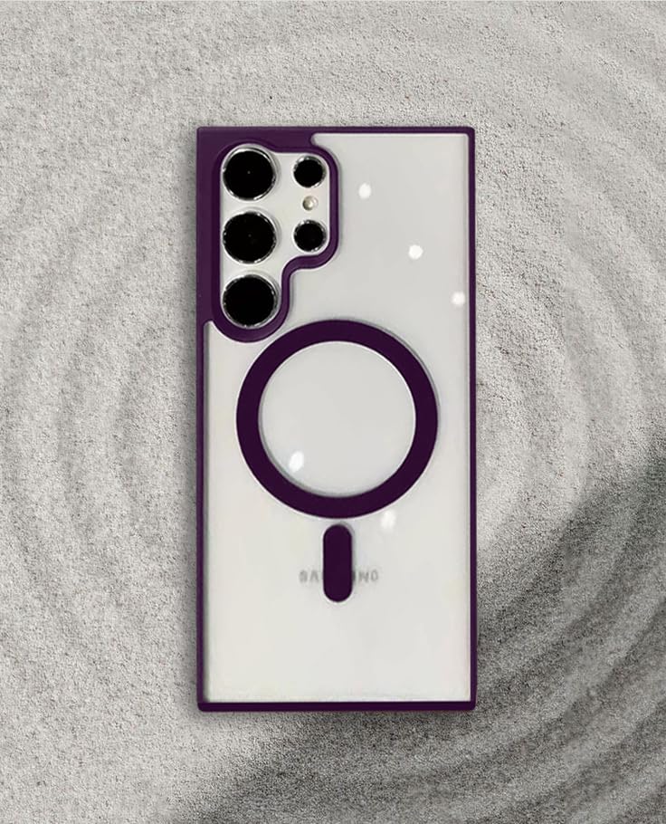 V Volt - جراب حمايه شفاف من V Volt ، متوافق مع Samsung Galaxy S22 Ultra جراب حماية ضد الصدمات ، تصميم مزدوج TPU وPC ، يدعم الشحن المغناطيسي ، جراب قوي أنيق عملي (أرجواني)