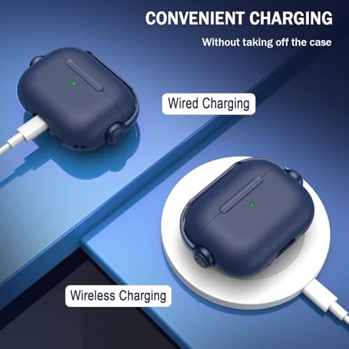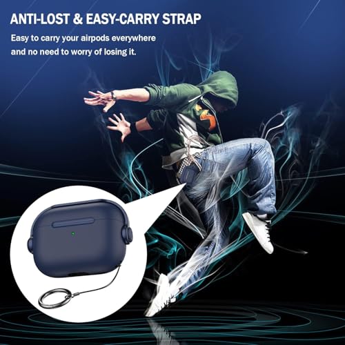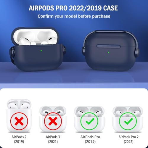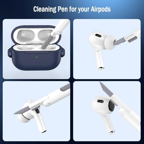 V Volt - حافظة من V Volt متوافق مع ايربودز برو الجيل الثاني/الاول (2023/2022/2019) مع قفل امن، حافظة واقية لسماعات الراس الموسيقية مع مجموعة تنظيف متوافقة مع ابل ايربودز برو. (كحلي)