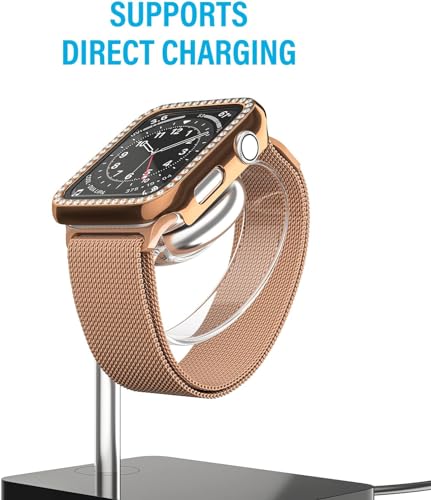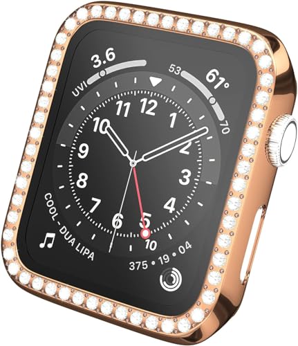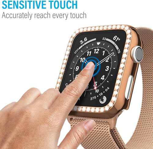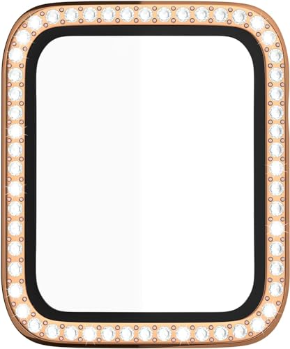 V Volt - جراب حماية رفيع بتصميم مرصع بالكريستال مع شاشة حماية من الزجاج المقوى لساعات اي ووتش 41 ملم سلسلة 8 و7 للرجال والنساء من في فولت، وردي ذهبي