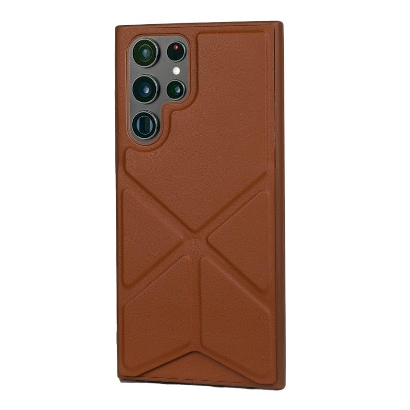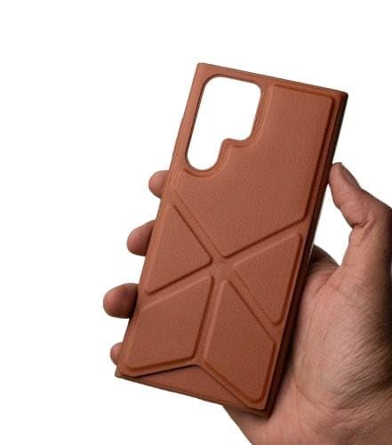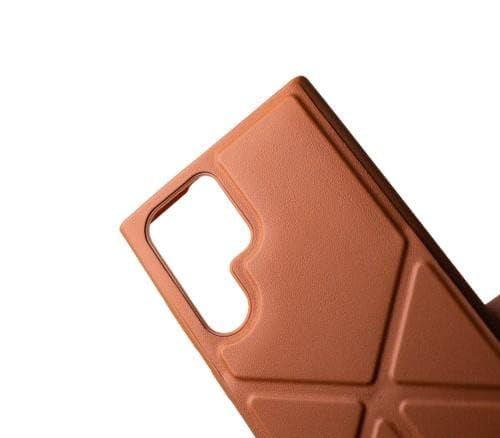 V Volt - جراب جلد متوافق مع سامسونج جالاكسي S24 الترا مضاد للصدمات مع مسند مغناطيسي غير مرئي وحامل قابل للطي بحماية شاملة وتصميم أنيق من في فولت (بني)