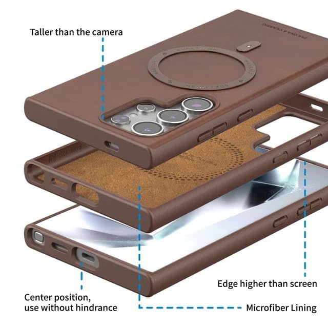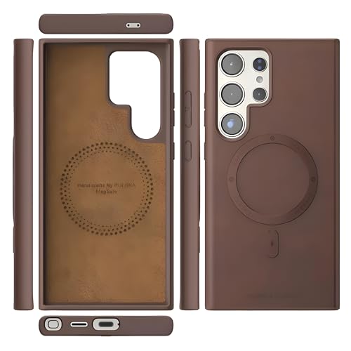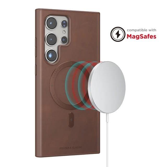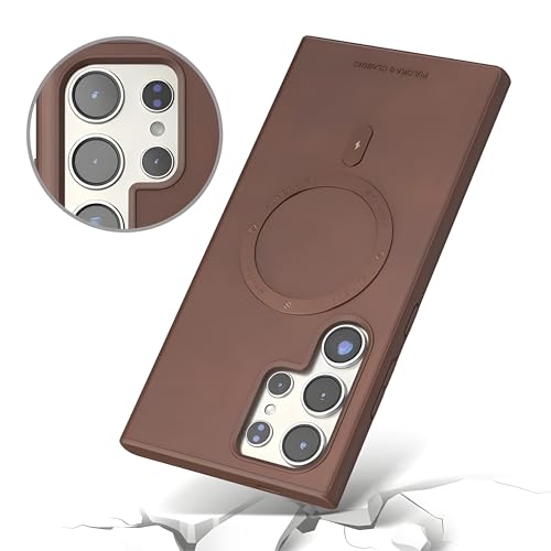 V Volt - جراب حماية جلد متوافق مع سامسونج جالاكسي S24 الترا مع حماية للكاميرا بتصميم رفيع وأنيق يدعم الشحن المغناطيسي مضاد للصدمات والخدوش من في فولت (لون بني)