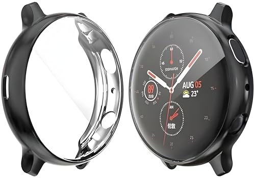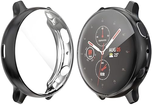 V Volt - حافظة حماية مصنوعة من البولي يوريثين المقاوم للحرارة بتصميم ناعم بتغطية كاملة متوافقة مع ساعة سامسونج جالاكسي اكتيف 2 مقاس 44 ملم من في فولت - (لون أسود)