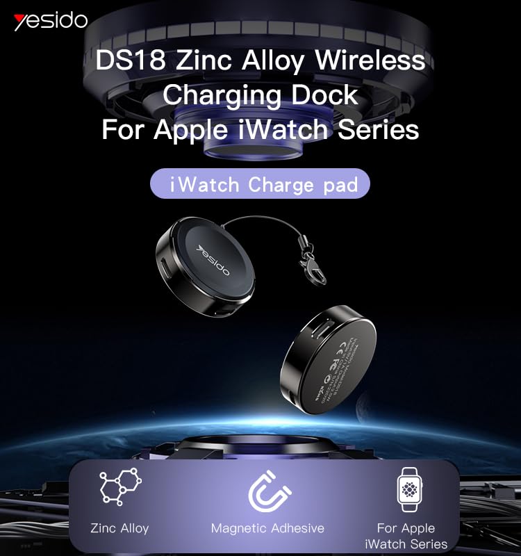 V Volt - شاحن مغناطيسي DS18 سريع محمول من V Volt مصنوع من سبائك الزنك، قاعدة شحن لاسلكية متينة وعصرية متوافق مع ساعات iWatch، تصميم صغير مدمج للشحن الآمن اليومي