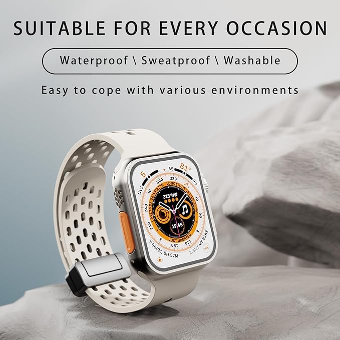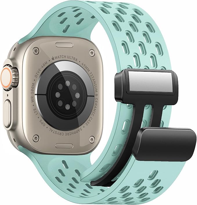 V Volt - سوار سيليكون أنيق من V Volt بمشبك مغناطيسي - مقاس 42مم و44مم و45 مم و 46 مم 49 مم متوافق مع اي ووتش 1/2/3/4/5/6/7/8/9/10 SE2 SE الترا/ الترا 2 -– سوار بديل مريح