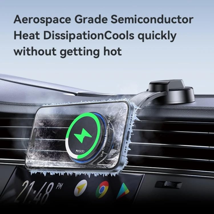 V Volt - شاحن سيارة لاسلكي من V Volt سريع مع تبريد ذكي C311 وتثبيت على التكييف بتقنية الشحن السريع 15 واط – متوافق مع الهواتف