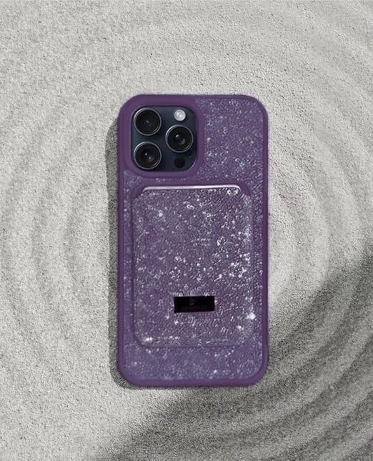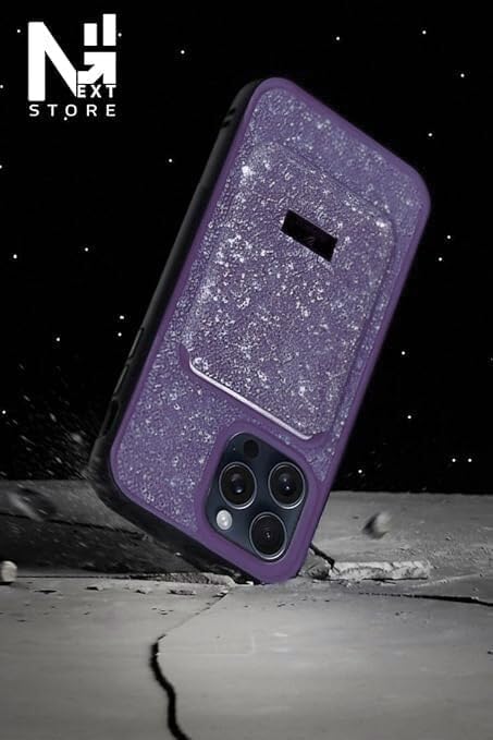 V Volt - جراب لامع من V Volt متوافق مع iPhone 15 Pro Max ، غطاء محفظة بلينج انيق مع حامل بطاقات، ممتص صدمات سيليكون فاخر مضاد للصدمات، حافظة جوال واقية ملونة (أرجواني)