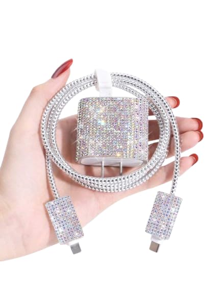 V Volt - جراب شاحن لامع من V Volt مع ملصقات كريستالية، منظم أسلاك، وحامي كابل – خامة TPU متوافق مع شاحن ايفون 20 واط